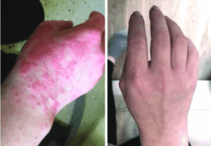 Det vattniga eksemet gjorde att huden på händerna flagnade och sprack.